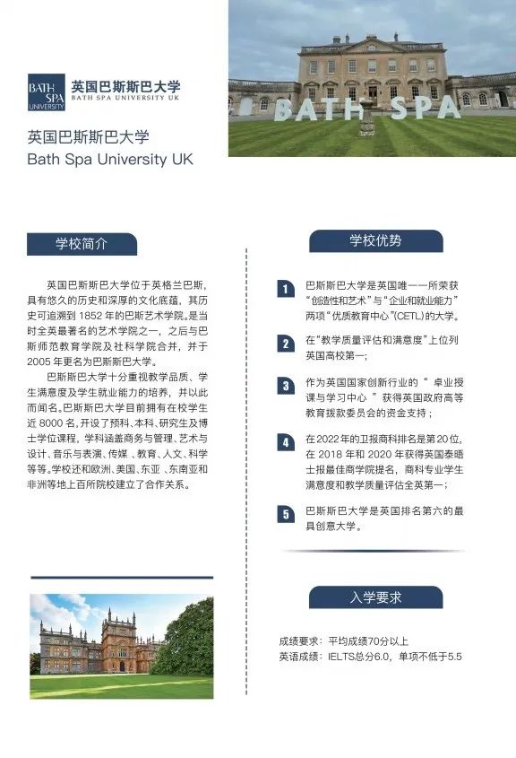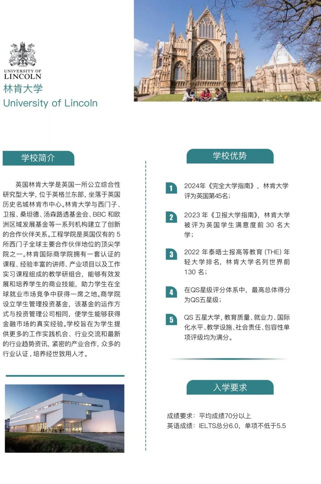 项目为有志于出国留学深造人员提供多元化选择,积极与英美等多所高校合作,为学生搭建优质的海外升学平台。项目始终坚持“严管厚爱,不止于学”的理念,致力于把学生打造成具有国际化视野,了解西方文化,具有跨文化沟通能力及合作能力的实用人才。