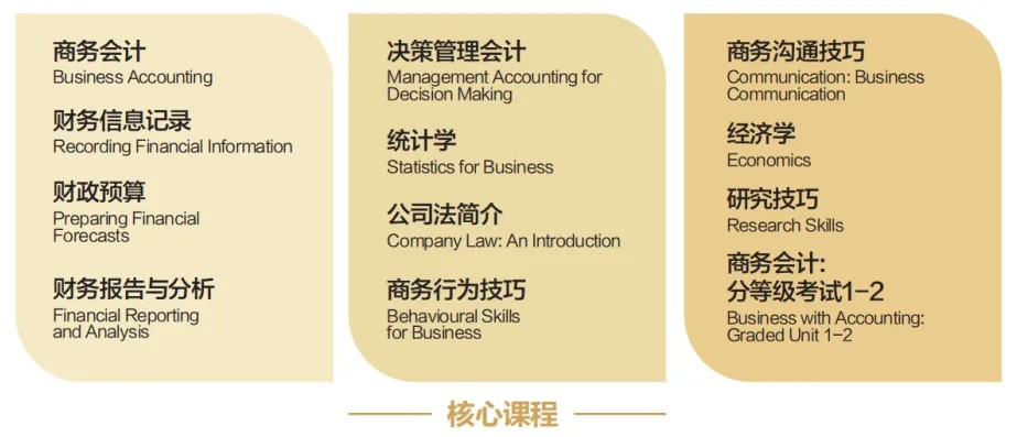 本专业培养全面掌握会计理论知识和方法,能够编制财务报表,进行资金筹集、投放、分配、决策分析的财务管理领域的国际化、复合型人才。毕业生可在国内外财政、审计、税务等政府机关,投行、会计师事务所、金融投资机构和企事业单位从事财务管理工作。本专业毕业生可根据自身情况选择考取含金量极高的专业证书,如:注册会计师(CPA)、英国公允注册会计师(ACCA)、特许管理会计师(CIMA)、金融分析师(CFA)等。