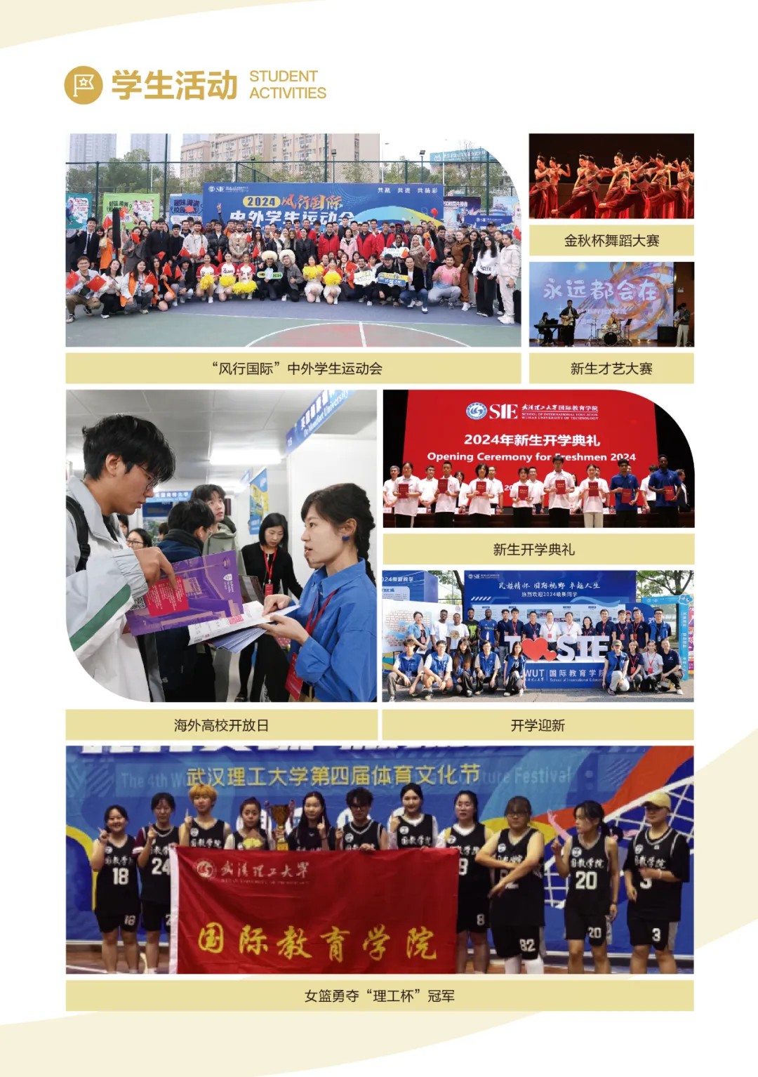 02 校内办学 学生在武汉理工大学南湖校区住宿学习,共享学校的软硬件教学资源,包括优质的教师资源、图书馆、教学场地、运动场所、宿舍、食堂等,同时还能感受学校浓厚的学习氛围和多彩的校园文化。 |